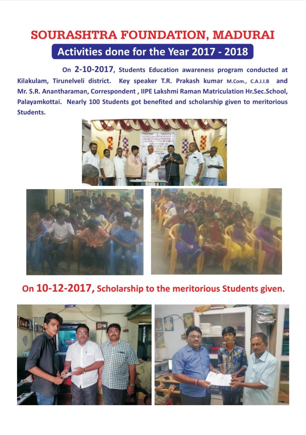 2017-2018 PROJECTS by Sourashtra Foundation · Published February 13, 2019 · Updated March 20, 2019 2017-2018 PROJECTS