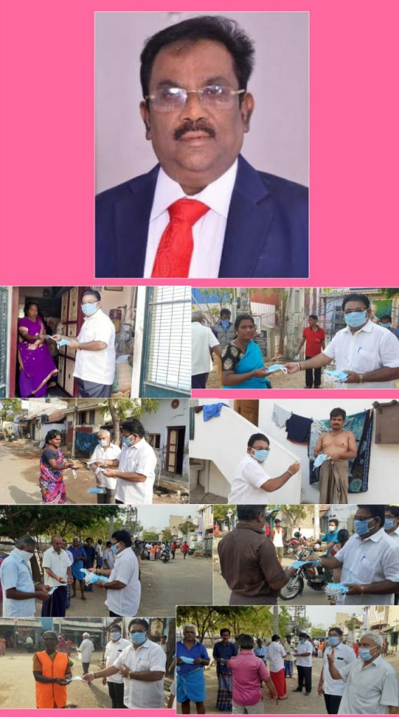 ஸௌராஷ்ட்ர மத்ய ஸபை உபதலைவர், ஸ்ரீமந் நாயகி இயக்கம் & ஸௌராஷ்ட்ரா பவுண்டேசன் கௌரவ தலைவர் Dr.V.R.ராஜேந்திரன் அவர்களின் பங்களிப்பாக மதுரை, அவனியாபுரம் பிரசன்னா காலனி ஸமூக மக்களுக்கு இலவச முககவசம் (Mask) ஸ்ரீமந் நாயகி இயக்கம் & ஸௌராஷ்ட்ரா பவுண்டேசன் தலைவர் வழக்கறிஞர் R.B.R.ராமசுப்பிரமணியன் அவர்கள் வழங்கினார்கள். உடன் மகாத்மா’ஸ் ட்ரஸ்ட் J.R.ரமேஷ், ஸௌராஷ்ட்ரா பவுண்டேசன் T.R.குமரன் & ஸ்ரீமந் நாயகி இயக்க துணை செயலாளர் M.R.பிரேம்குமார்.