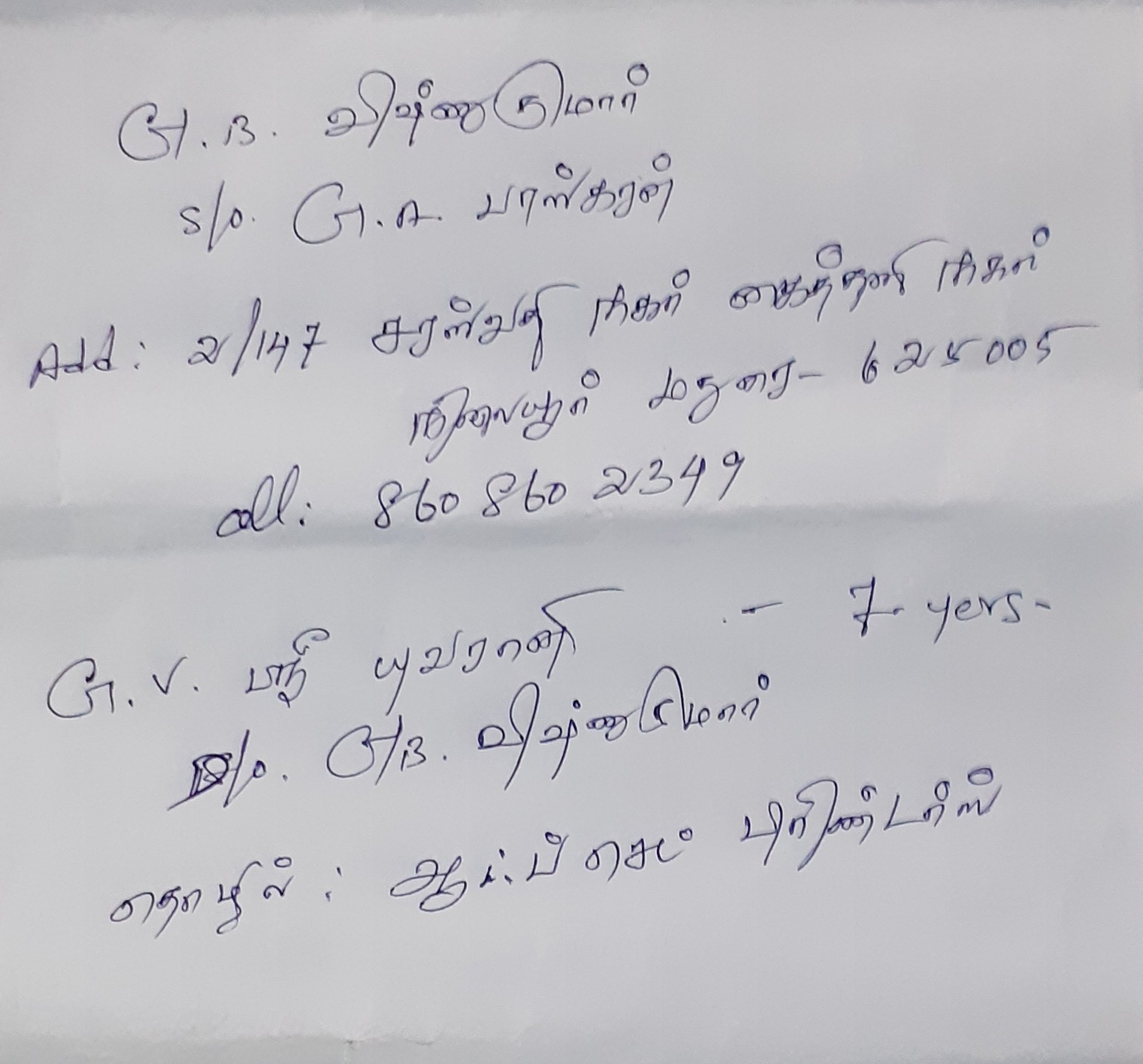 மதுரை,கைத்தறி நகரை சேர்ந்த ஆப்செட் பிரிண்ட் வேலை பார்க்கும் G.B.விஷ்ணுகுமார்