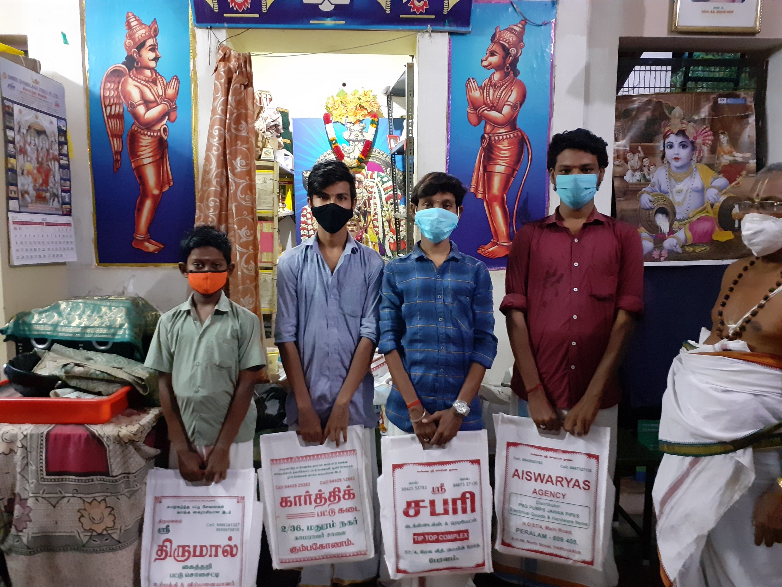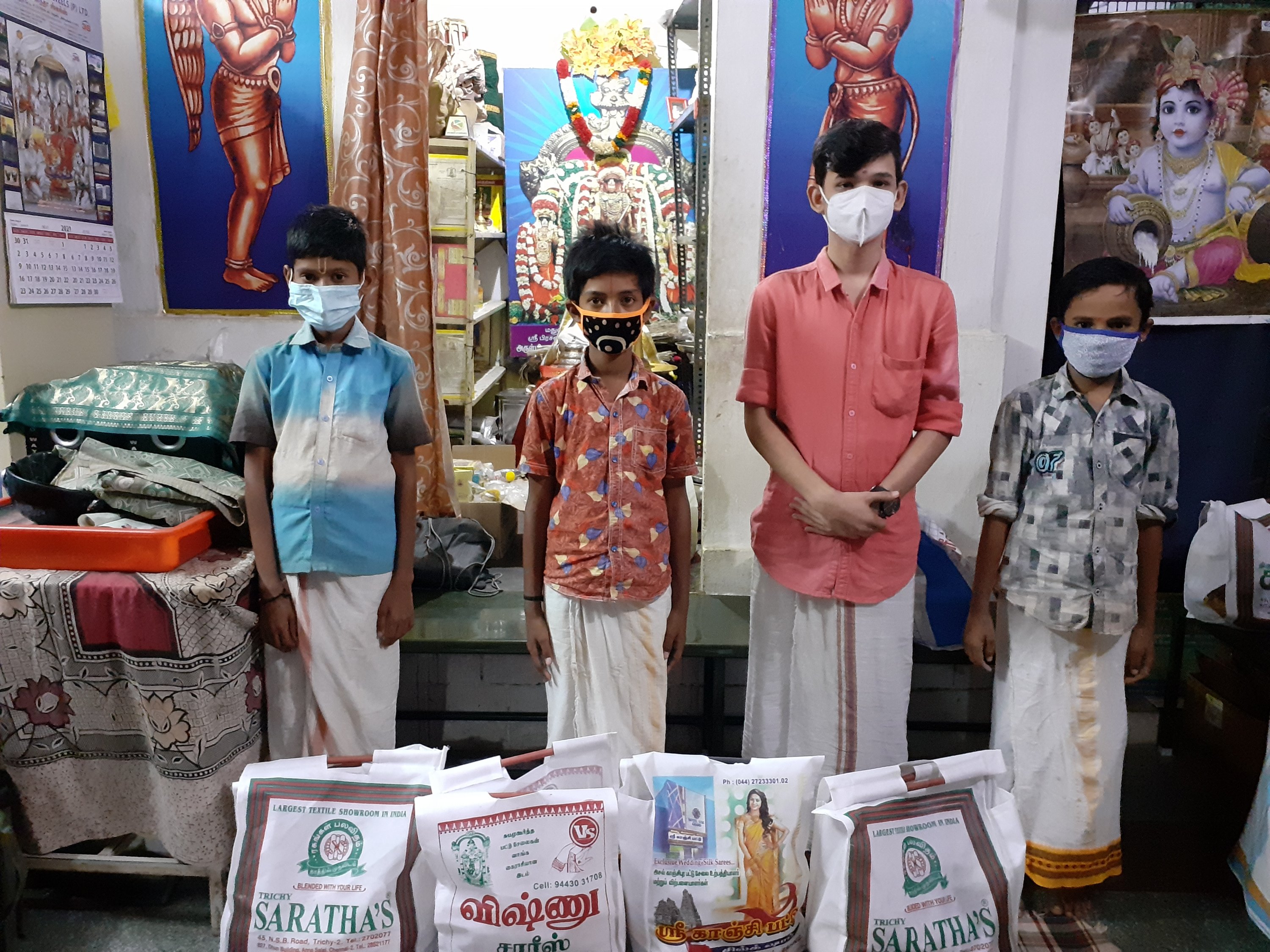 ஸௌராஷ்ட்ரா பவுண்டேசன் நன்கொடையாளர்களின் சார்பாக இன்று 21-06-2021 கொரானா லாக் டவுன் காரணமாக கஷ்டப்படும் இருபது  ஸ்ரீமந் நாயகி வேத பாடசாலை மாணவர்களின் குடும்பத்தினருக்கு Rs.500/- மதிப்பு அரிசி மற்றும் 10 வகை அத்தியாவசிய மளிகை பொருட்கள் வழங்கப்பட்டது.