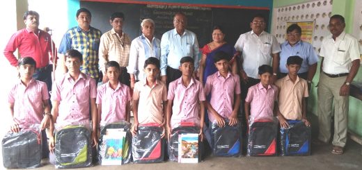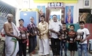 ஸ்ரீமந் நாயகி ஸ்வாமிகள் வேத பாட சாலையில் வேதம் பயில புதிதாக சேர்ந்த மாணவர்களுக்கு பேக் வழங்கிய போது